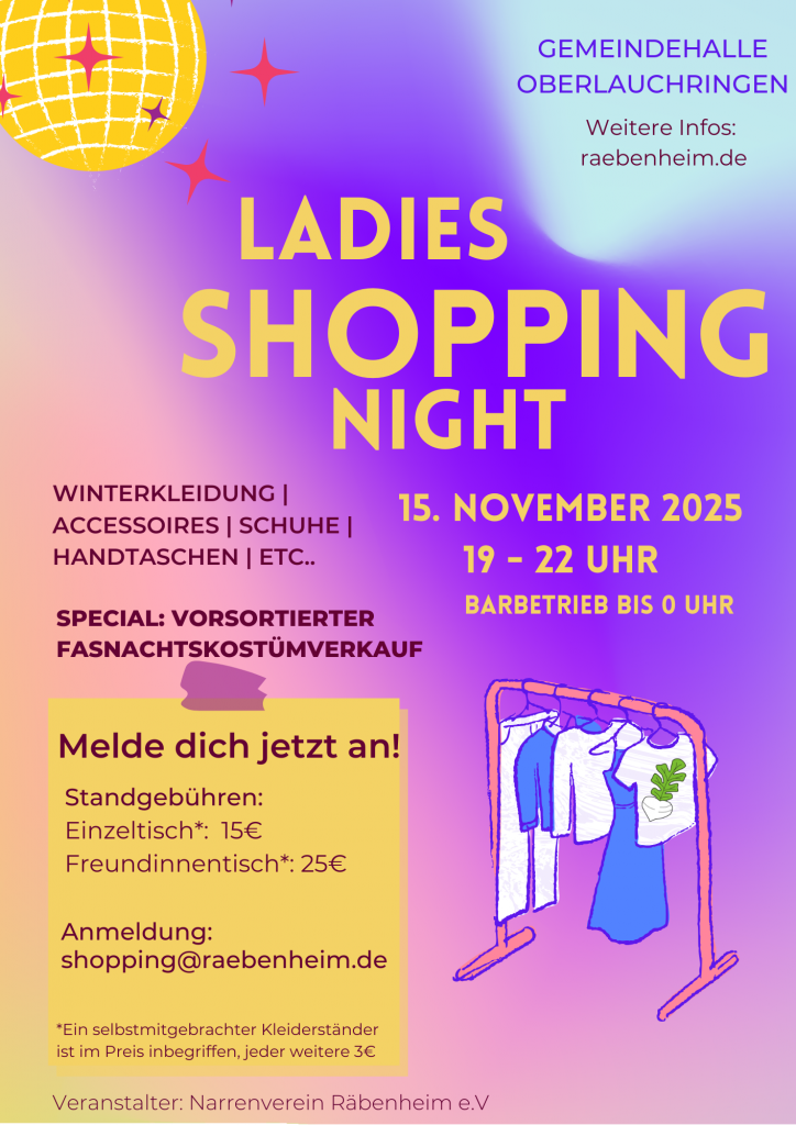 Erlebe die Ladies Shopping Night 2025 – ein Abend voller Mode, Accessoires und guter Laune! Ob als Besucherin auf der Suche nach Schnäppchen oder als Verkäuferin mit eigenem Stand – hier bist du genau richtig.
